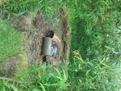 As we left the T S-S borders we looked back over them from the raised pathway. Dampness from earlier showers made the path surface glisten and reflect the blue of the sky.