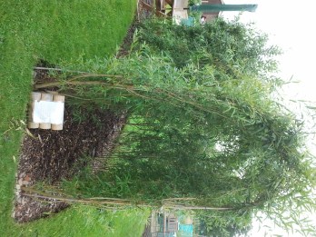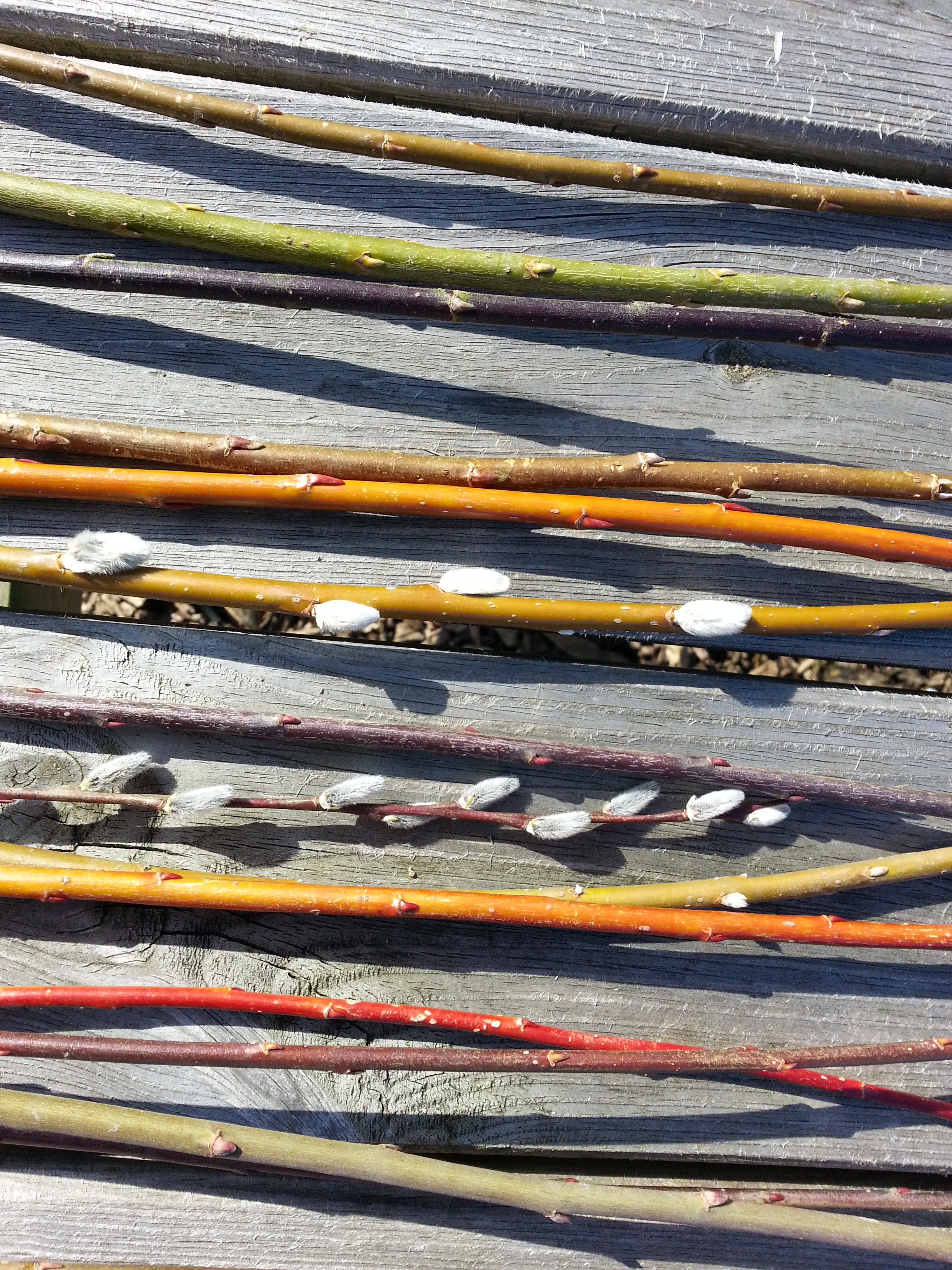 On the lawned slopes by the glass fronted cafe giant snowdrops powered over our heads. We always love willow structures! These were made from willow, some stripped of their brownish green bark and were beautifully woven and shaped. They stood a good 10 feet tall.