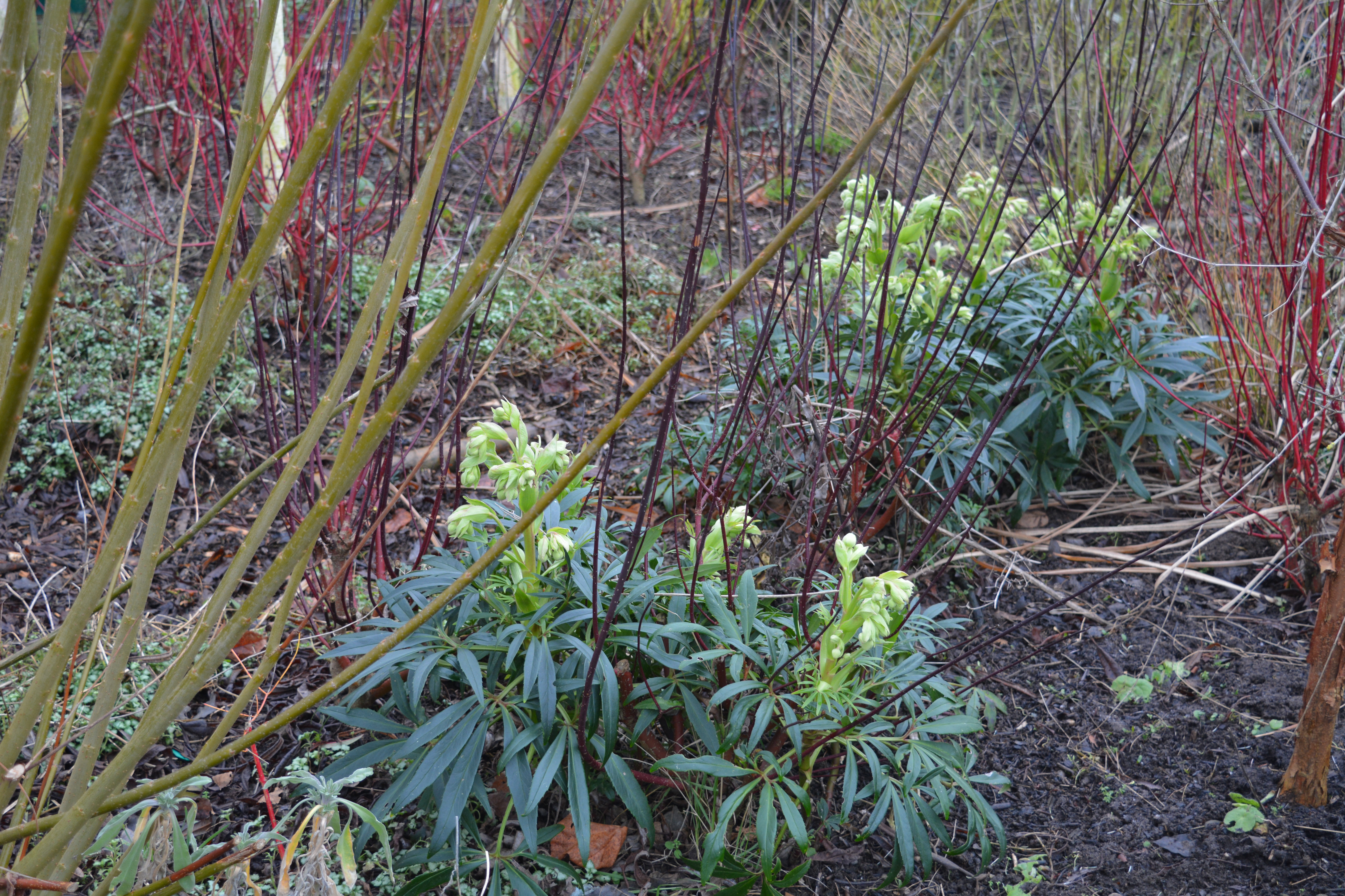 The views down to the pond through the scree area showed great variations in colour and texture but many of the shrubs still remained totally leafless.