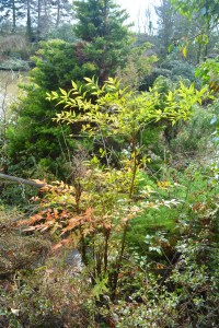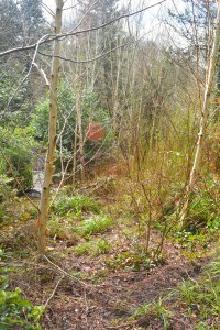 The trees were extremely tall with brambles and bracken as undergrowth at this time of year with the addition of a blanket of dried leaves. As we wandered along the path we were aware of movement along side us. There was not even enough breeze to move leaves so the movement was not the wind. We watched and discovered that a small flock of Goldcrests was feeding, searching beneath bramble leaves picking off insects using their long fine bills. They seemed to be in such a hurry.