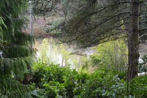 As we left the view over the gate we crossed the River Tern by a suspension bridge from where we watched the eddies produced by the extra flood water moving down the river. It was as we stepped off the bridge that we decided that we were entering a section of the woodland where peace reigned as fewer people walked this far. It was a good time to utilise the ideas of Shinrin Yoku.