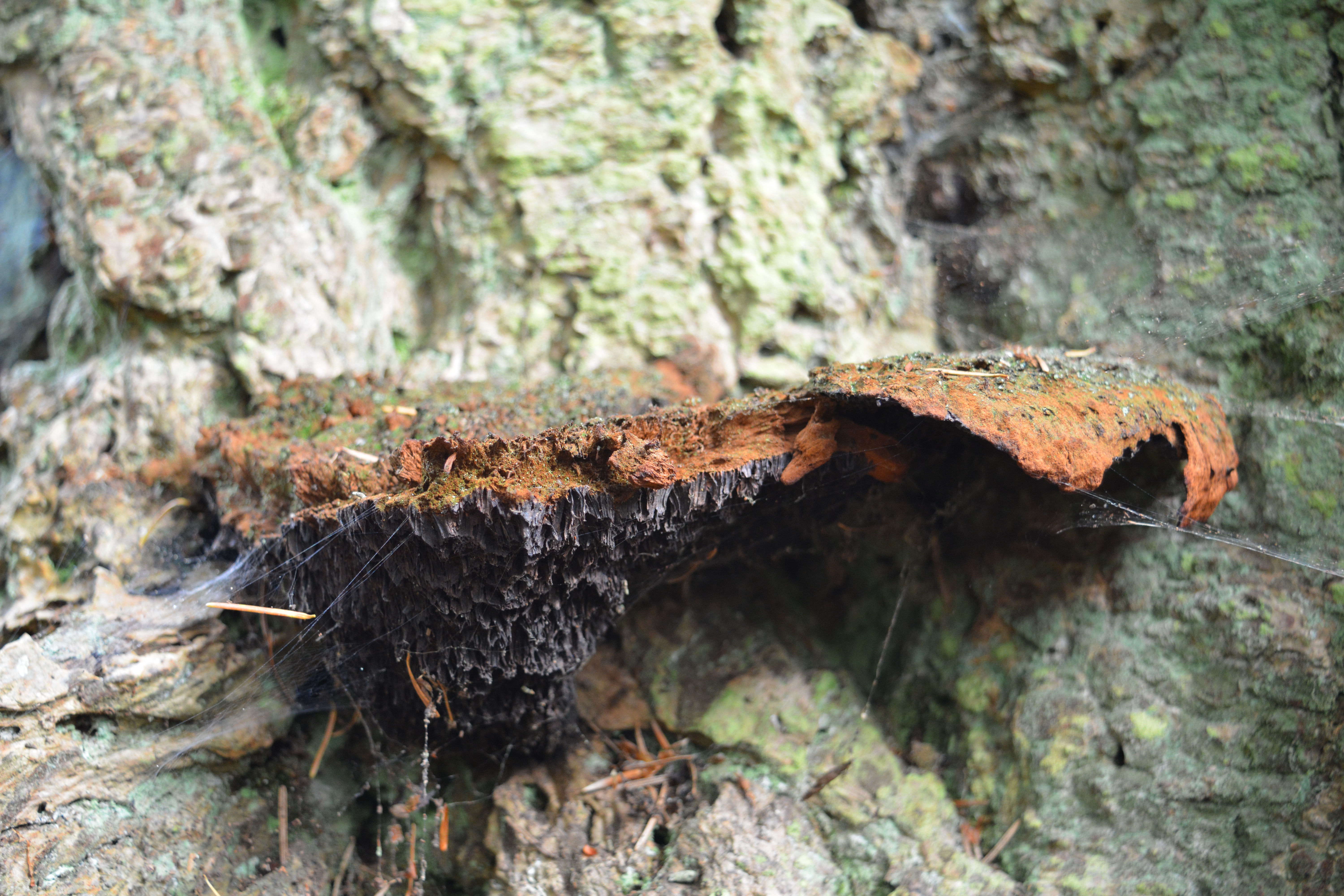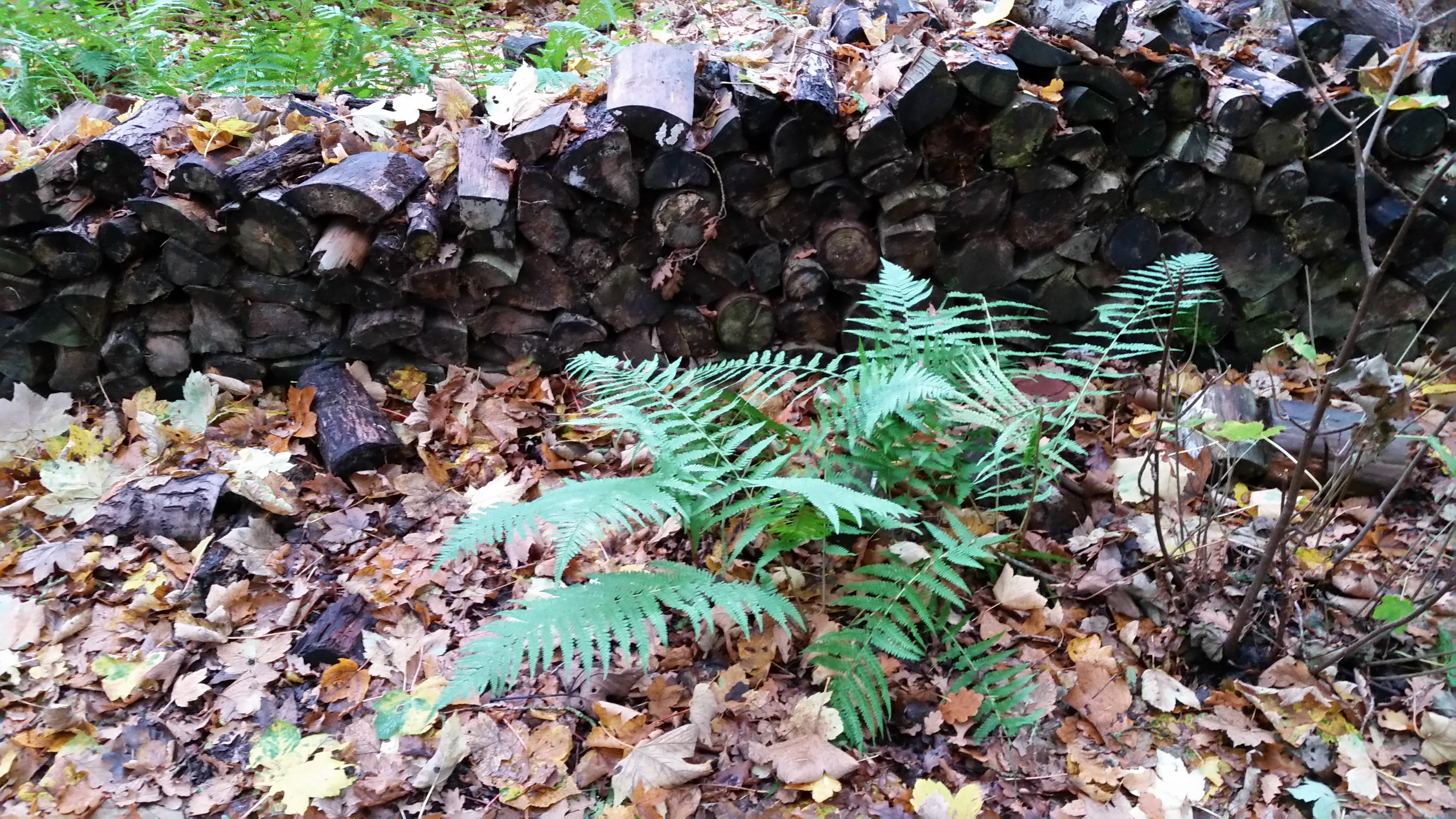 Logs had been piled up to create habitats for wildlife winding wooden walls through the trees. The aroma here was of rotting wood, dampness and fungi.