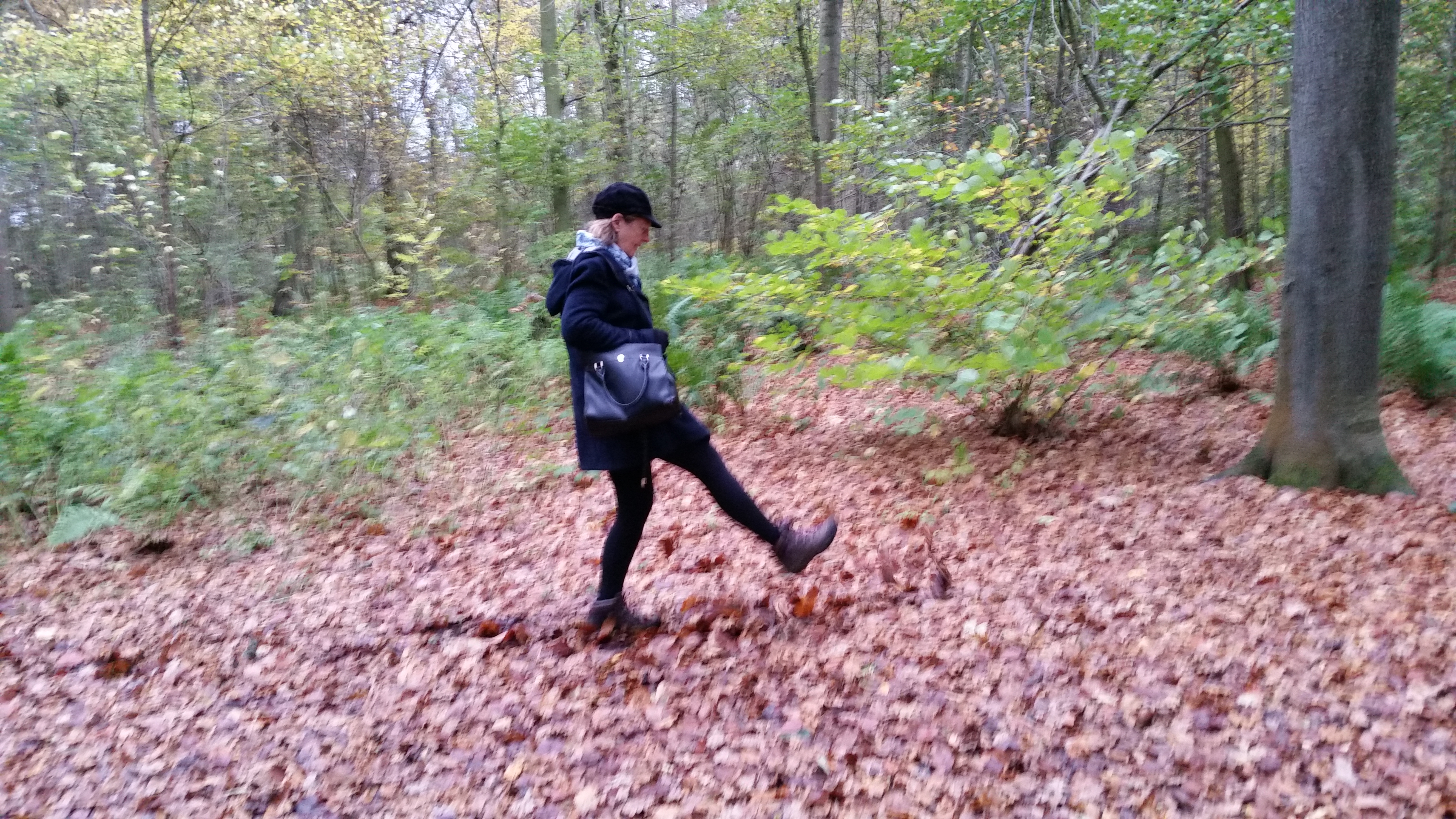 We wandered on into the woods along winding paths beneath towering trees above while at our feet the orange, yellows and reds of fallen leaves. Fallen leaves always bring the children out in Jude and I and we kicked our feet through them, enjoying the sounds and woody aromas.