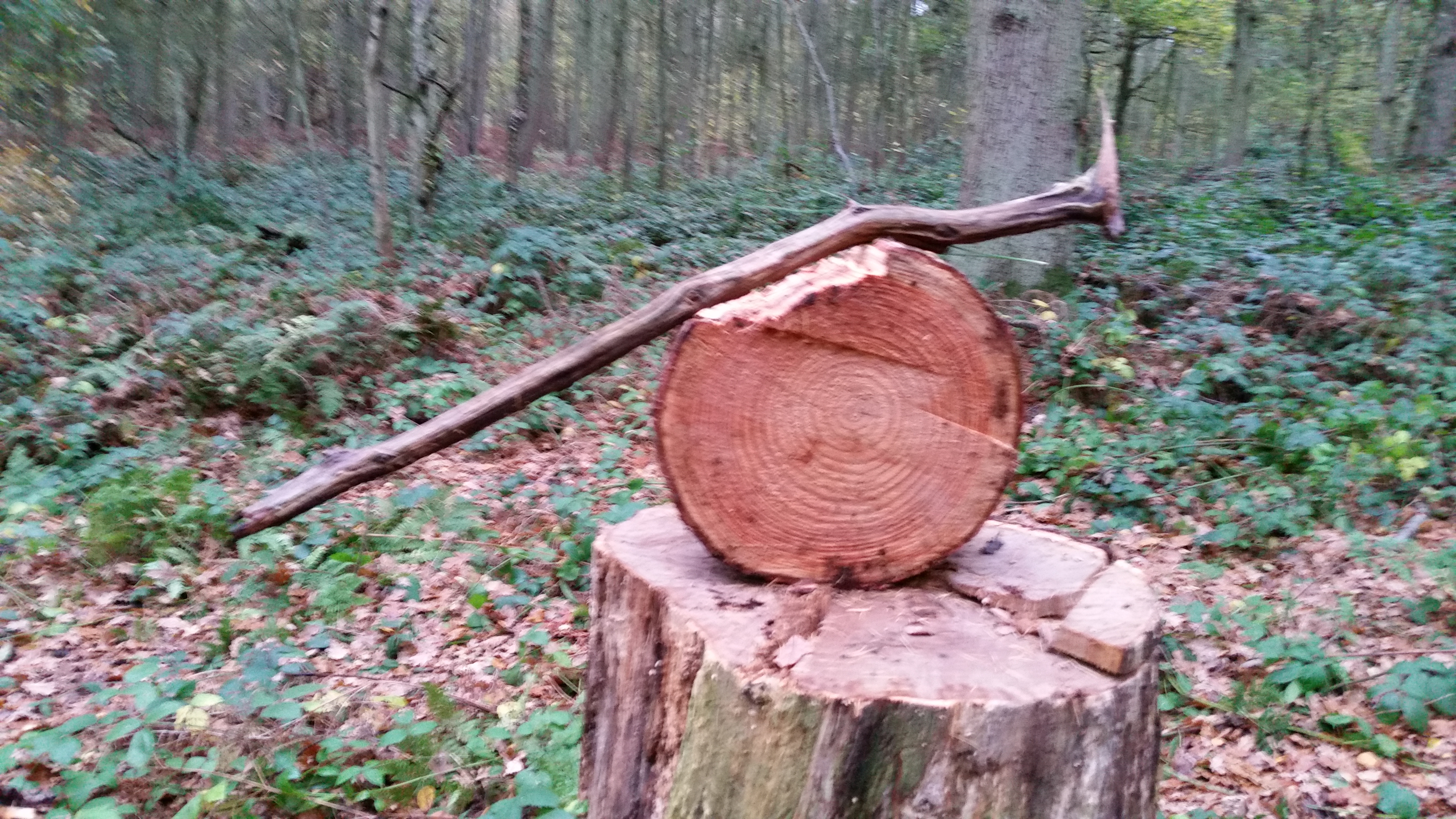 I found slithers, slices and wedges of freshly cut wood and placed them among the stumps.