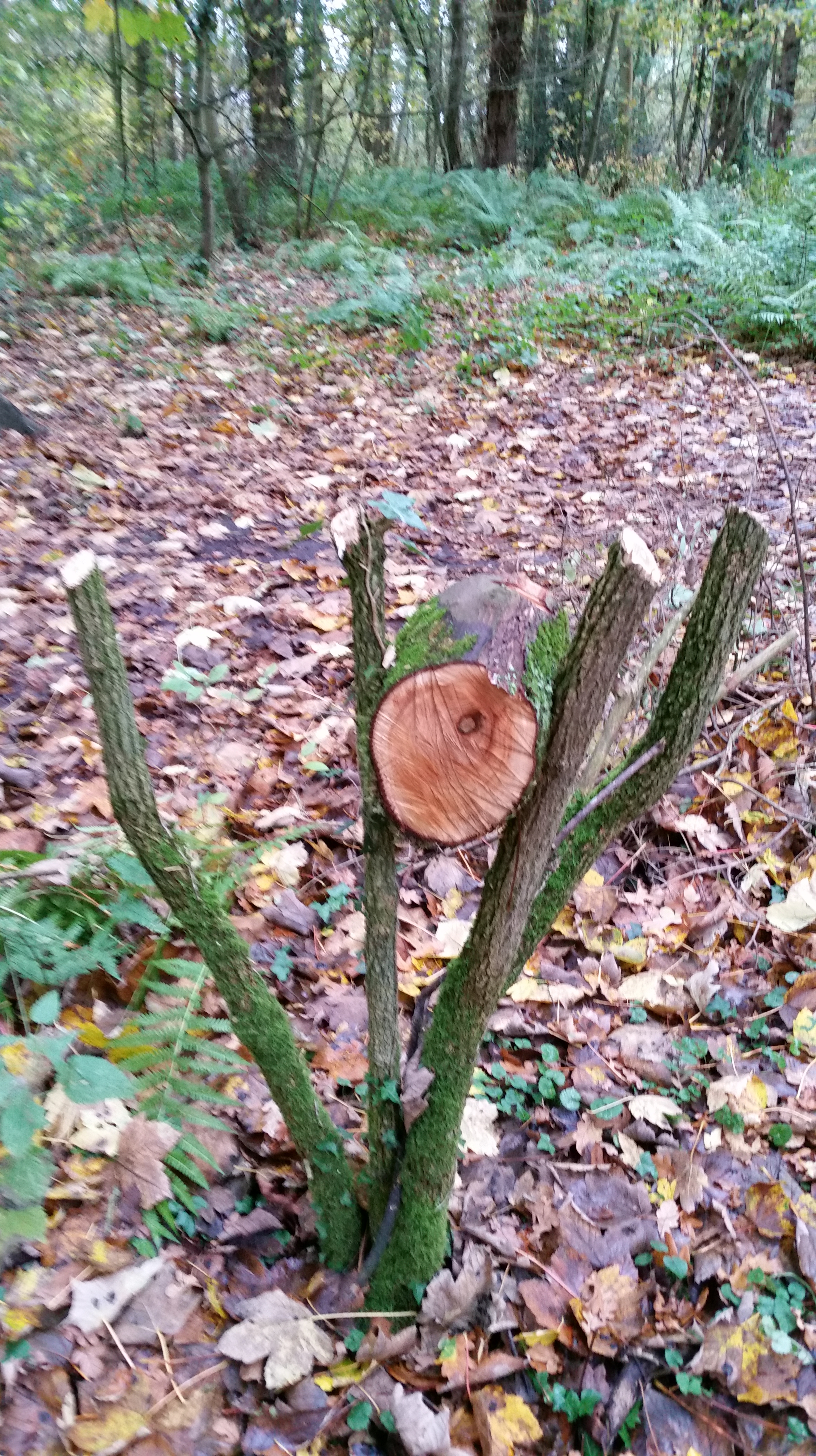 Moving further into the woodland the woodsmen had left areas cleared for coppicing, leaving multi-stemmed trees cut low to encourage regrowth. They reminded me of sculpture by Barbara Hepworth which are exhibited among trees at the Yorkshire Sculpture Park.
