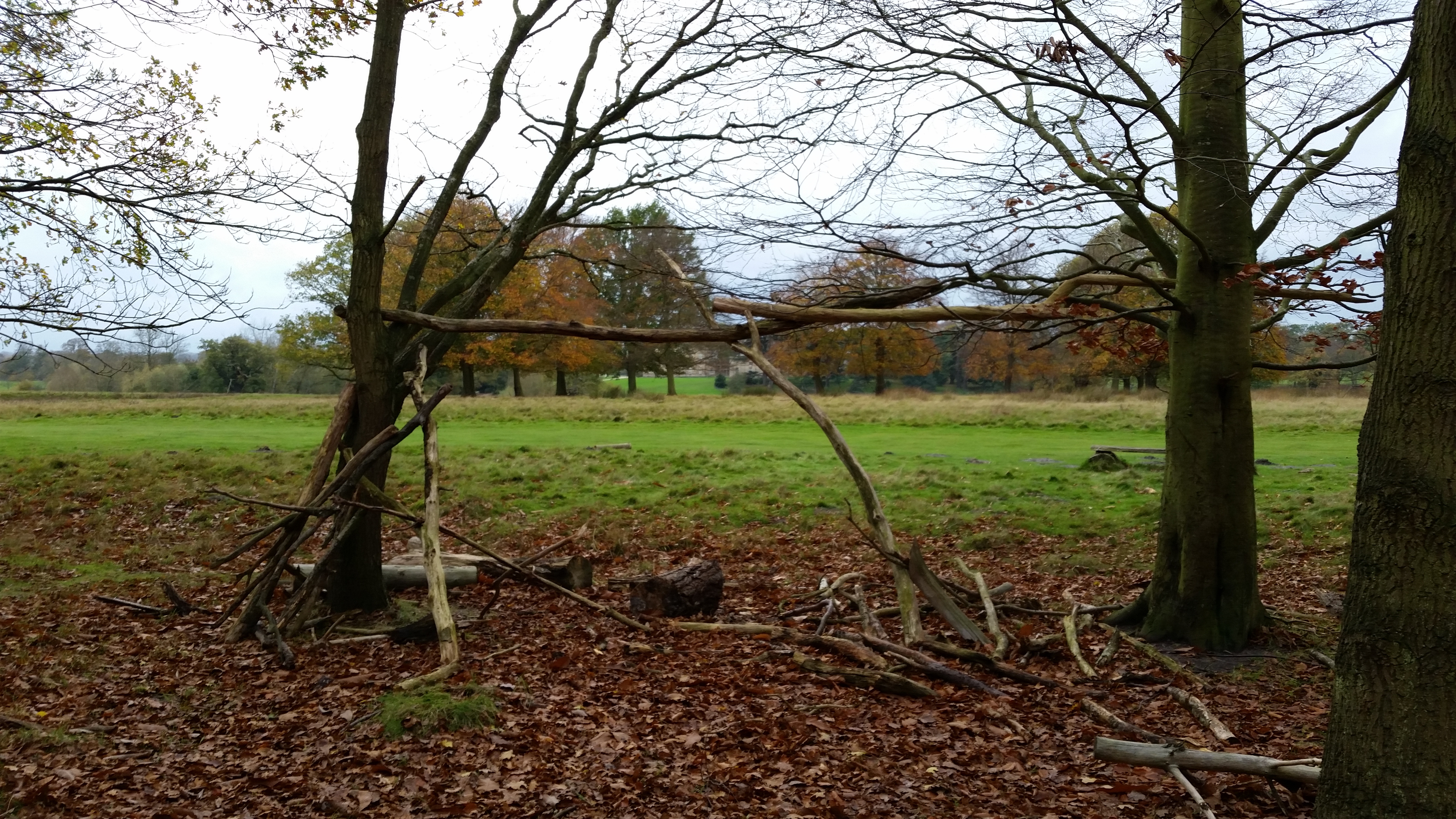 As we left the woodland we moved into the deer park where trees were much further apart separated by tracts of bright green grass. Here fallen branches, trunks and brash had been left for children to make dens from. Another form of sculpture created by youngsters using wood from the surrounding trees. The dens had their own beauty and naivety. Each time we visit Attingham these dens change, new ones appear, the oldest begin to fall apart and some just seem to get bigger and bigger. Well done to the National Trust for encouraging such creativity for the visiting youngsters and for affording them the opportunity to get in touch with nature.