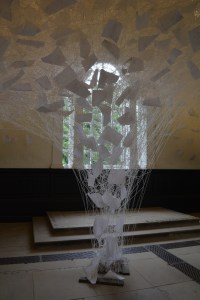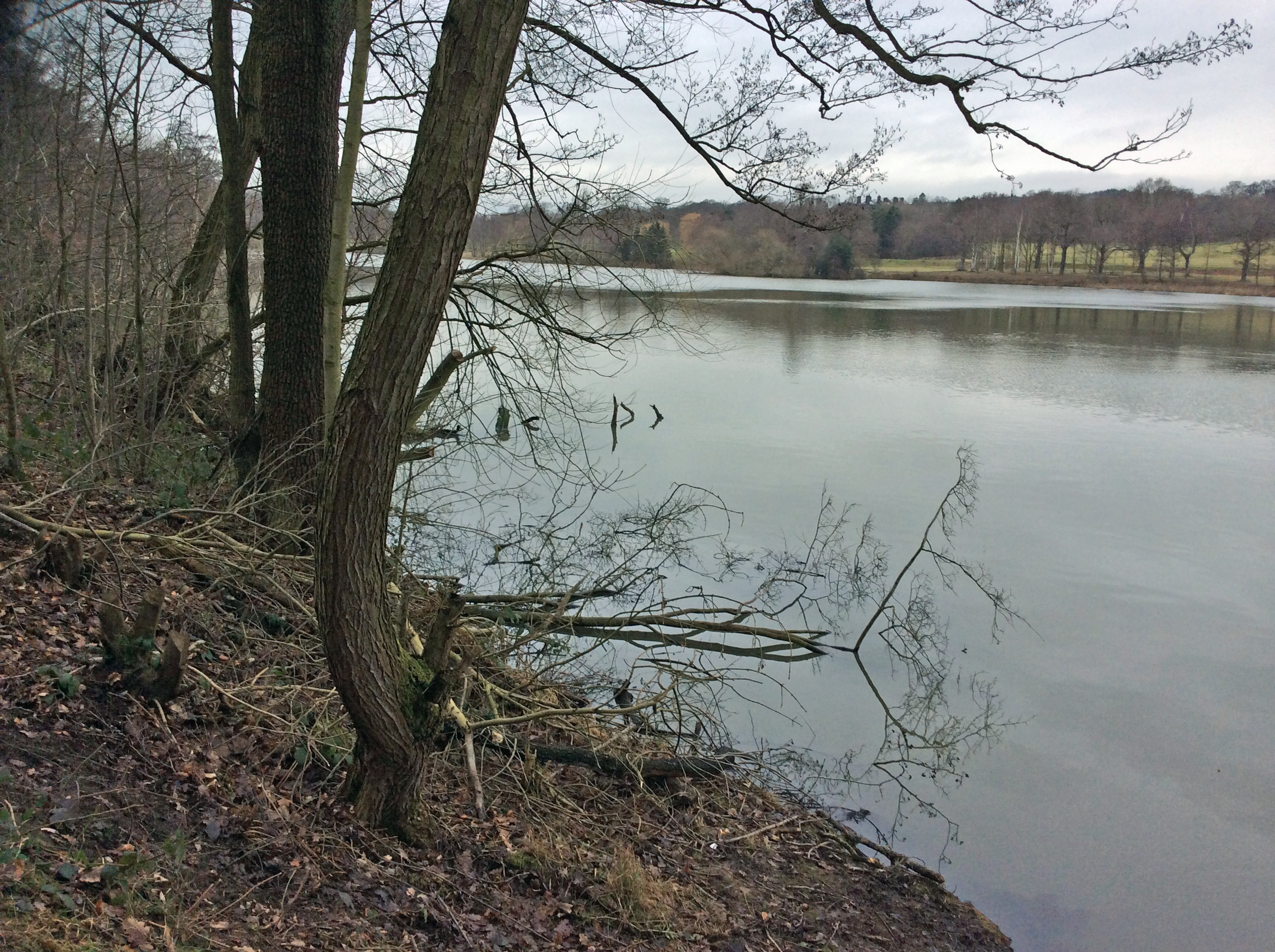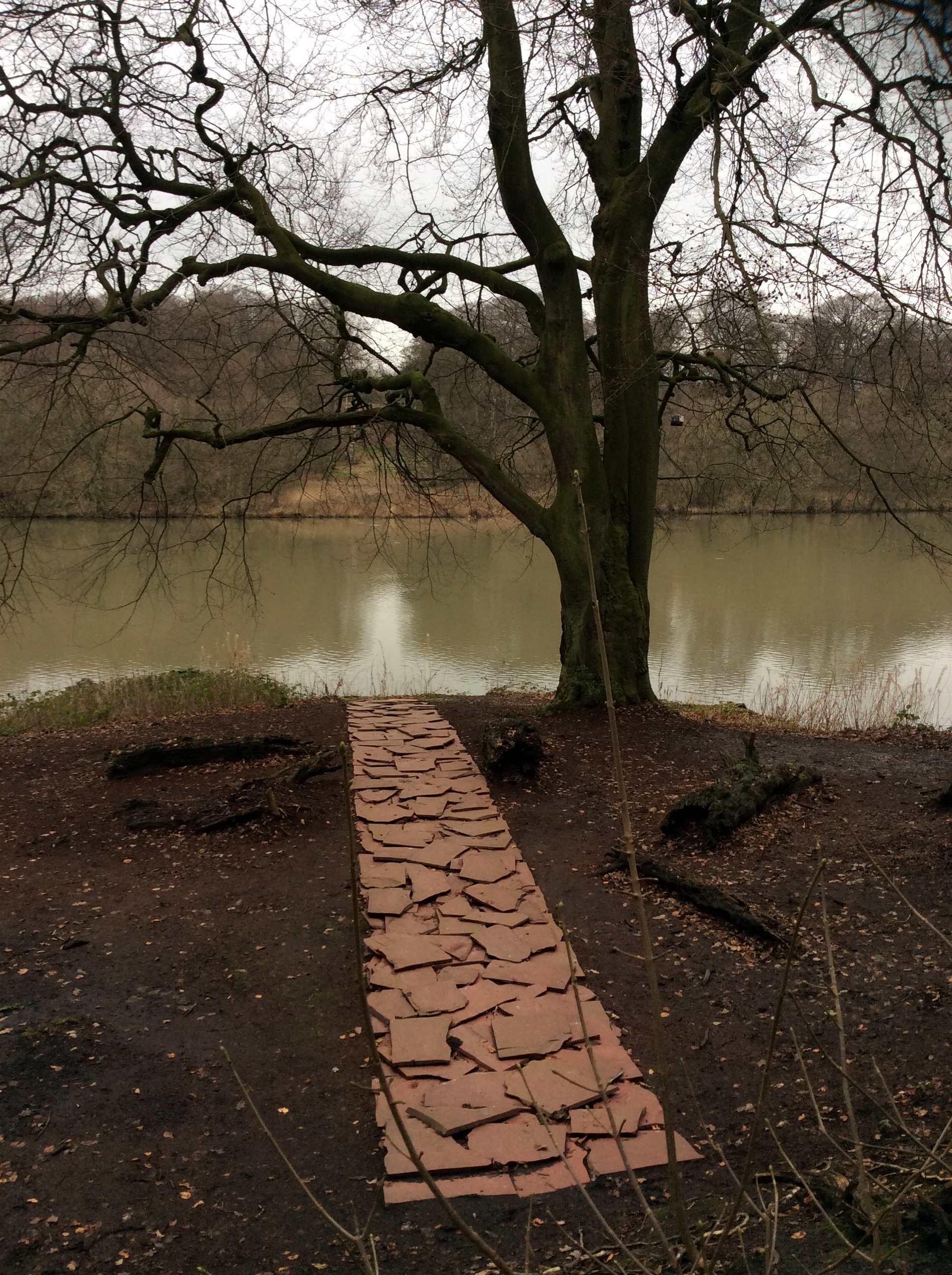 The second of the David Nash pieces was closer to the water’s edge between the trees and the biscuit coloured leaves. Just like the steps the wood had been scorched by burning. Sadly the camera on my i Pad couldn’t cope with the contrasts so the beautiful colour of the dried reeds has burnt out.
