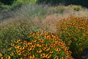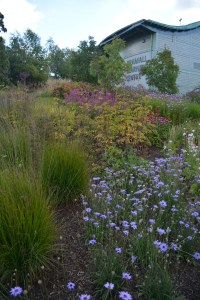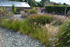 The car park, roads and paths surrounded by gardens designed by Tom Stuart-Smith afforded visitors a very warm welcome, with grasses in their biscuit, coffee and ginger colours of early autumn, sitting below young deciduous trees.