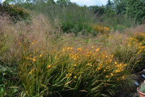 Below one of my favourite perennials, sanguisorba is mingled in with an umbel possibly Selinum wallichianum to great effect. The small tree to the right is a Zanthoxylum simulans or the Sichuan Pepper.