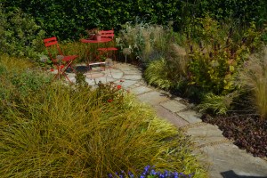We were not disappointed. We saw how well the plants had become established and the stream had become a sparkling central feature running down the slope through the garden.