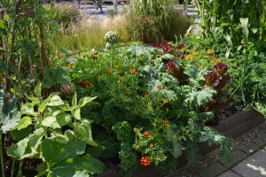 We turned left into the first part of the walled gardens, the vegetable garden designed by the design team Harries Bugg. Sadly weeds had invaded several of the raised beds and the overall effect was of sadness and neglect. I did find a few interesting places though.